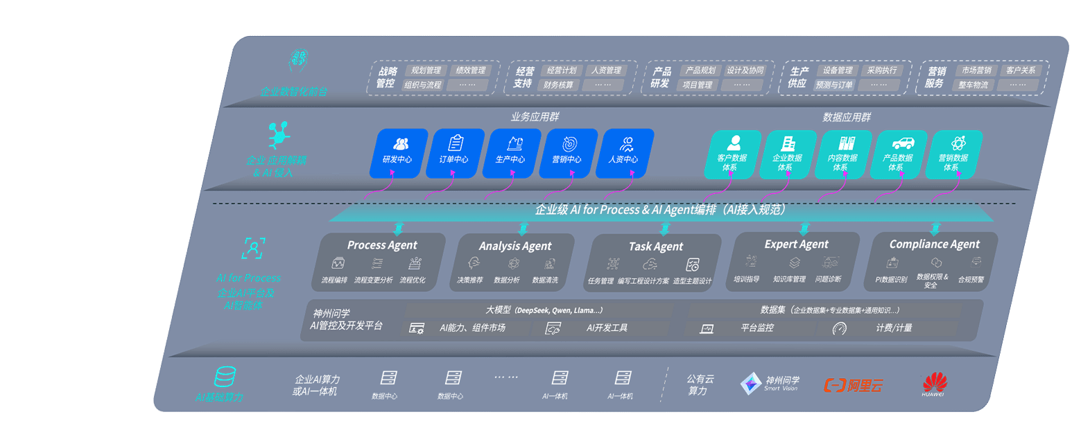 端到端的一站式AI工作空间深度融合了从企业战略规划到日常经营的全流程业务板块,,,定向解决车企内部领域多、、部门多、、、链条长、、、、场景碎片化等难题,,,支持车企快速构建以AI为核心的生产力写作体系,,实现任务执行与AI能力的无缝集成与交互